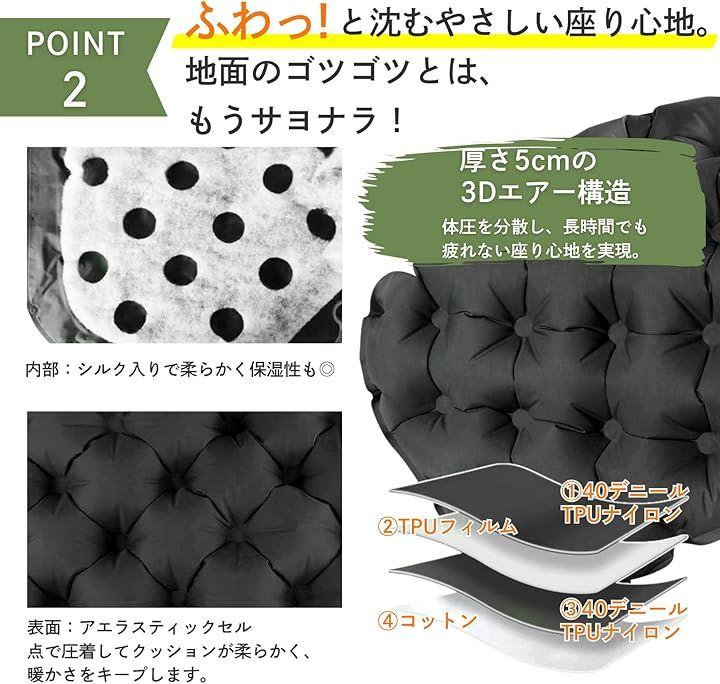 「ふわふわ快適な座り心地」 膨らませれば厚さ5cmの3Dエアークッションに。