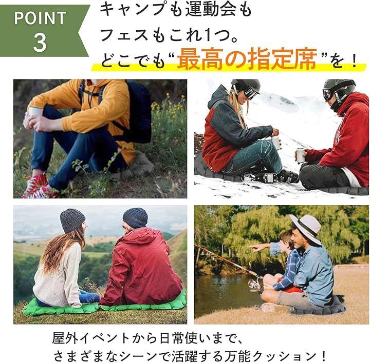 「多用途で大活躍」 キャンプ、登山、釣り、スポーツ観戦、野外フェス、花火大会、オフィスや旅行先まで、どこにいても“座る”時間をもっと快適にしてくれる、エアークッションです。