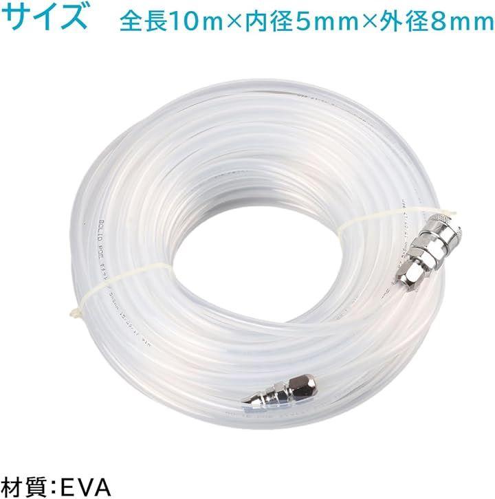 サイズ:全長20mx内径5mmx外径8mm / 重量:620g / 材質:EVA / 耐熱温度:0°~70°C / 耐空気圧: 6-12KG / バースト圧力: 24KG / カラー:ホワイト