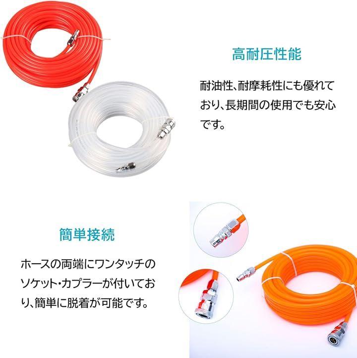 「仕様」サイズ:全長10mx内径5mmx外径8mm / 重量:360g / 材質:EVA / 耐熱温度:0°~70°C / 耐空気圧: 6-12KG / バースト圧力: 24KG / カラー:レッド