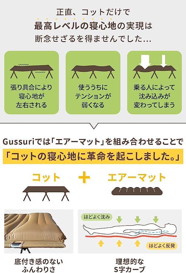 まるで自宅のベッドで寝ているかのようなふかふか感を実現。コットとエアーマットのいい所取りをした製品がキャンプでも快適な寝心地をお約束します。