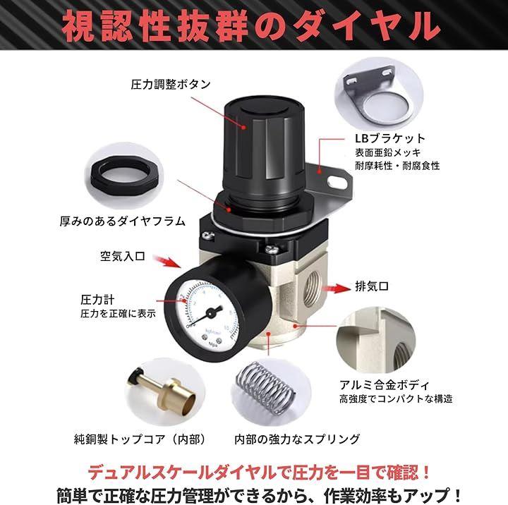 「高効率な圧力調整バルブ」 高効率でシール性能に優れた圧力調整バルブが、空気漏れを防ぎ、作業効率を高めます。