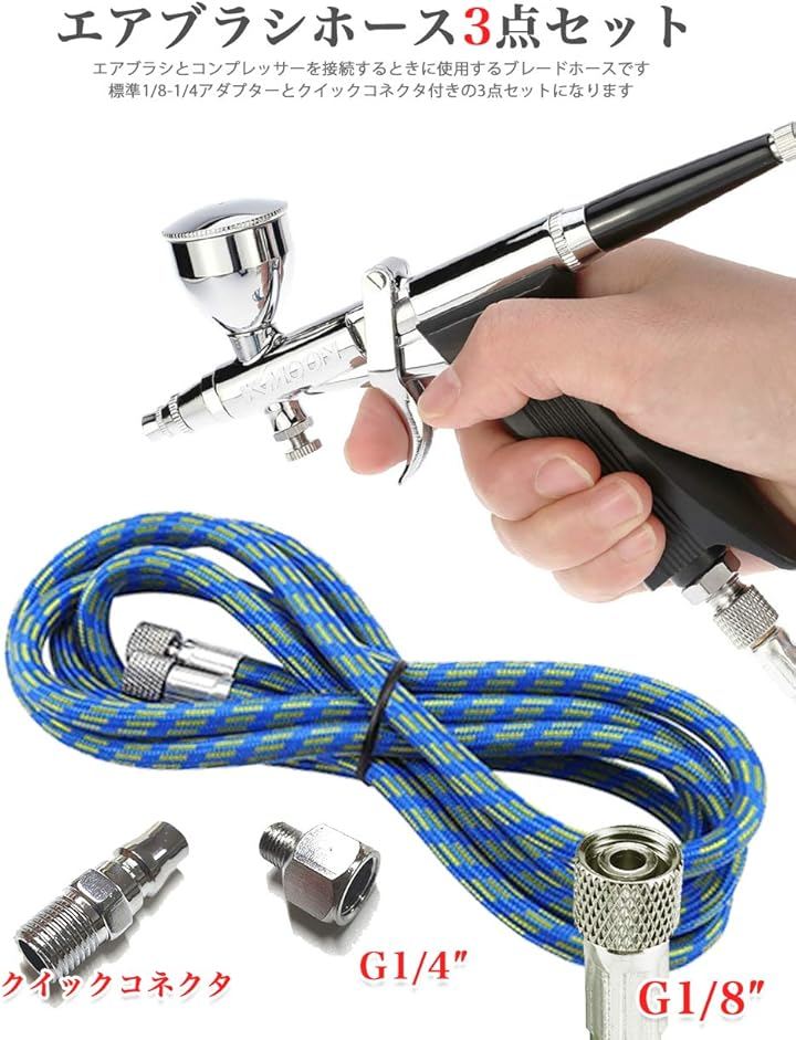 「エアブラシホース3点セット」エアブラシとコンプレッサーを接続するときに使用するブレードホースです。