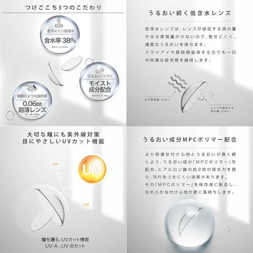 0.06㎜の超薄レンズを使用したコンタクトレンズ。薄くてかるいので、コンタクトレンズ特有の装用感が少なく、裸眼のようなつけ心地です。 低含水38%で瞳の水分蒸発が少ないので、目の乾きを軽減し、適度なうるおいを保ちます。 【まとめ買いがおすすめ!】毎日使う方にぴったりなお得なセット(2箱?8箱)をご用意。ストックしておけば買い足しの手間もなく、1箱あたりがもっとお得に◎ ◆1日終日装用タイプ/1箱30枚入り/片眼1か月分 ◆ DIA(直径):14.0mm ◆ BC(ベースカーブ):8.7◆ 中心厚:0.06mm ◆ 含水率:38% ◆医療機器承認番号:2290BZX00217000