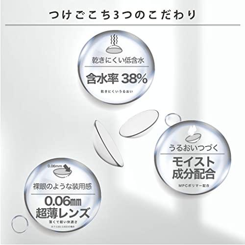 0.06㎜の超薄レンズを使用したコンタクトレンズ。薄くてかるいので、コンタクトレンズ特有の装用感が少なく、裸眼のようなつけ心地です。 低含水38%で瞳の水分蒸発が少ないので、目の乾きを軽減し、適度なうるおいを保ちます。 ◆1日終日装用タイプ/1箱30枚入り/片眼1か月分 ◆医療機器承認番号:2290BZX00217000 ◆ DIA(直径):14.0mm ◆ BC(ベースカーブ):8.7◆ 中心厚:0.06mm ◆ 含水率:38%