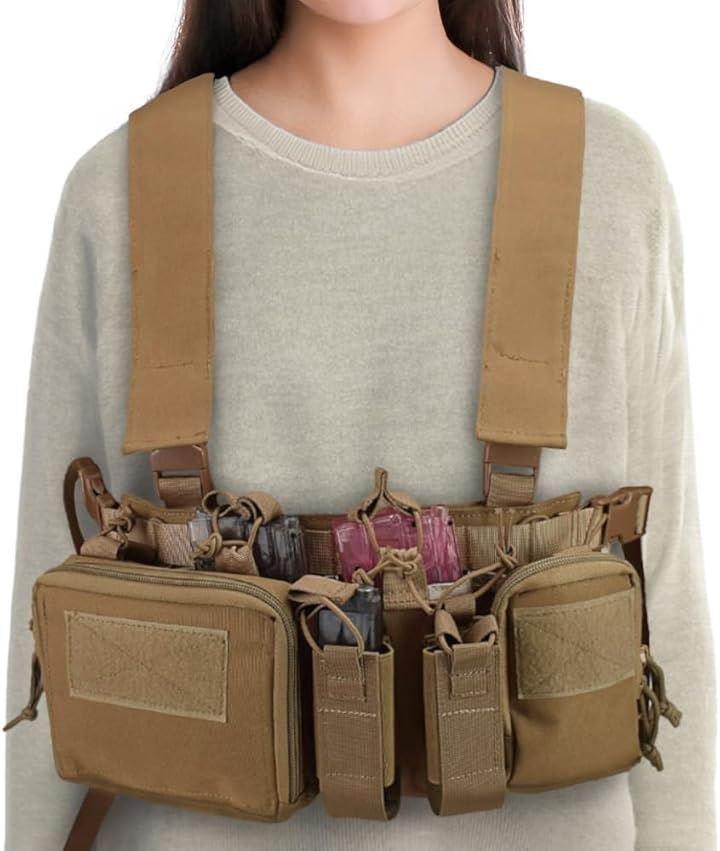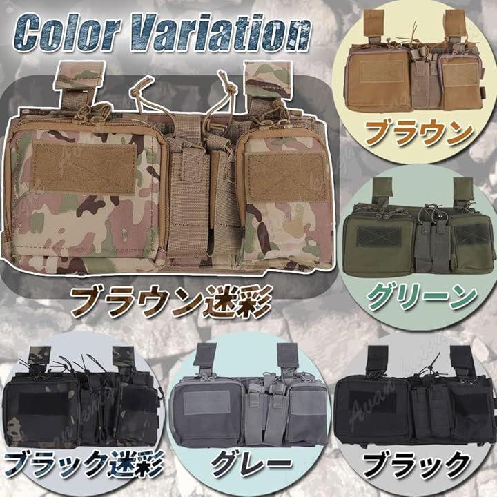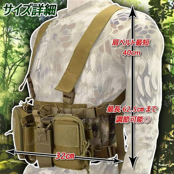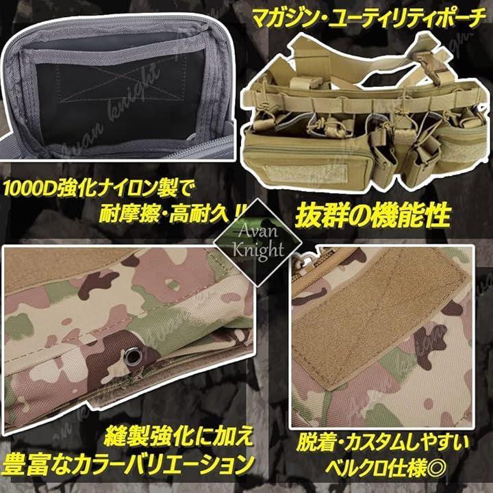 ベストタイプは重く感じる方や苦手な方は軽量タイプのチェストリグを選択肢に。・ユーティリティポーチ、M4系マガジンポーチが標準装備されております。