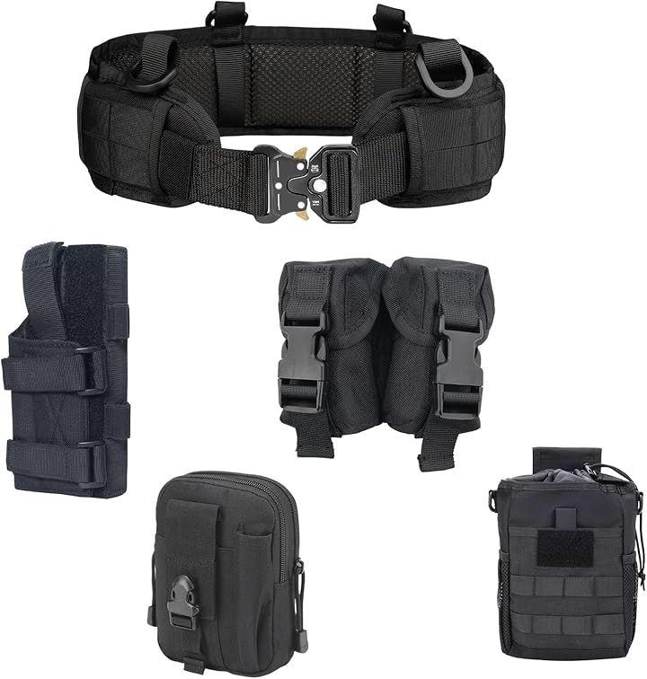 「タクティカルベルト」 適合ウエスト80cm~115cm 「moleパッド」長さ77cm 高さ9cm 厚み1cm 「ダンプポーチ」 縦24cm 幅15.5cm 厚み9cm「多機能ポーチ」スマホや財布、鍵などの必需品をスマートに整理。