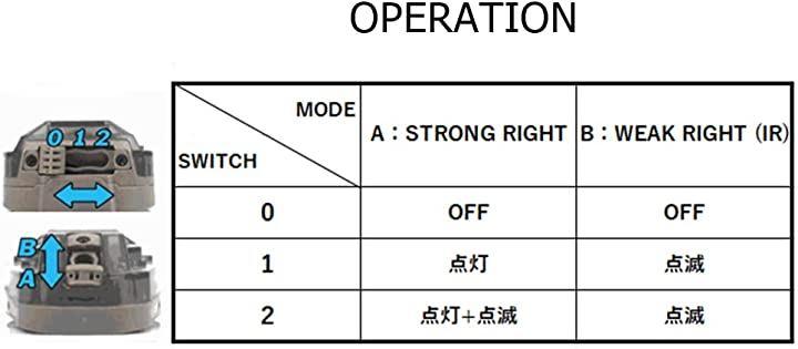 「機能」LED(1:点灯 ・ 2:点灯+点滅)IR(1・2:点滅) 「仕様」〇ABS/ナイロン〇65g〇面ファスナー