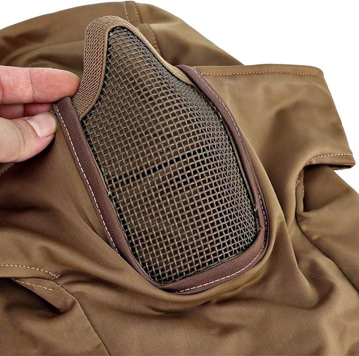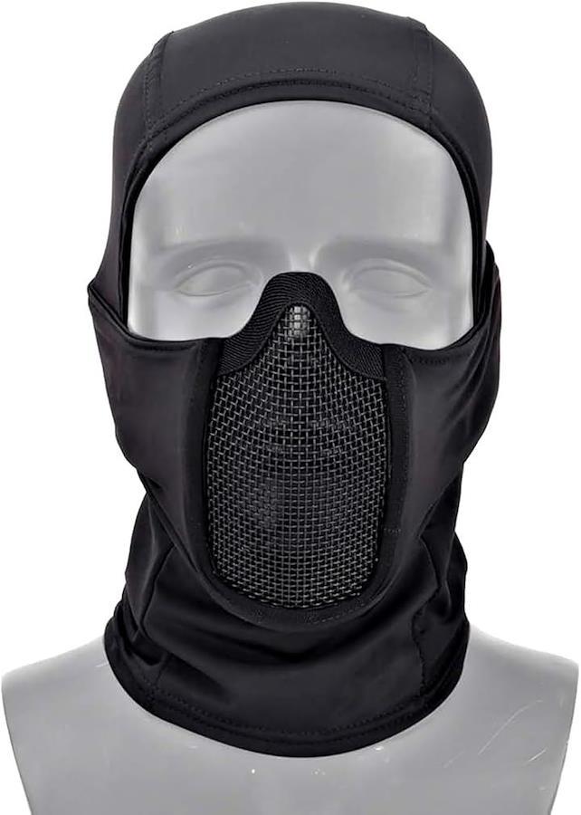 「特徴」(1)強度:金属メッシュでBB弾から口元や前歯をしっかり保護します(2)通気性:口元から鼻にかけて金属メッシュ素材になっているので通気性が良くゴーグルが曇りにくいです(3)携帯性:軽量コンパクトです(4)素材:肌触りの良いポリエステル素材で伸縮性、通気性、吸水性が良く長時間の装着でも快適なフィット感です(5)調整可能:ゴムバンド・アジャスターによって長さを自由に調整できます。