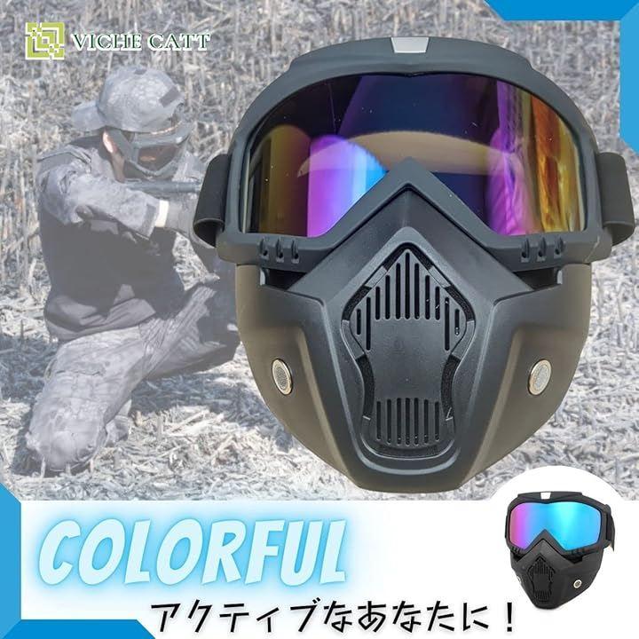 フレームカラー:ブラック レンズカラー:透明色クリア・シルバー ・ カラフル(青系) ・ イエローの4色 簡単に着脱・分離可能なゴーグル・マスクのセット商品になります。
