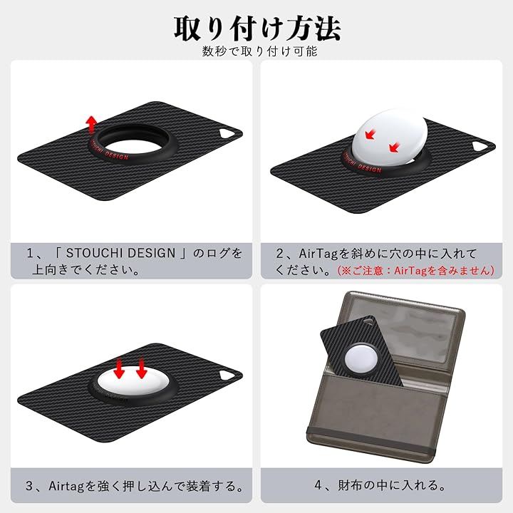 「パッケージ」2枚のairタグ財布収納カード、日本語説明書