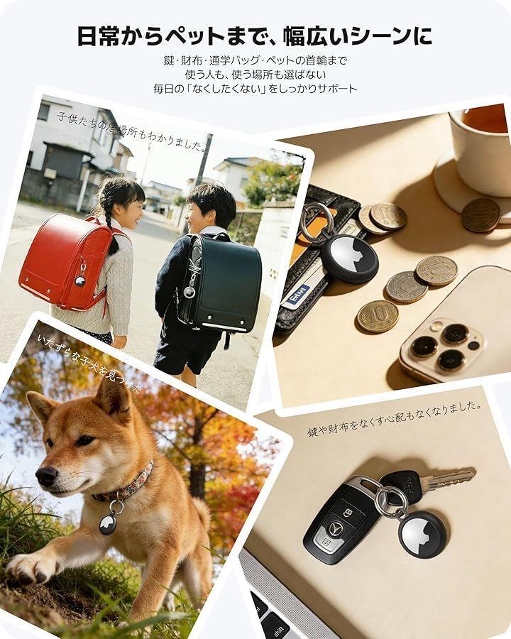 「取り付け簡単・幅広い用途に対応」AirTagの電池カバーにしっかり被せるだけの簡単装着。