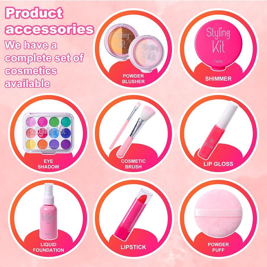 【何が含まれている?】箱にはメイクパレット、偽のリップスティック・リップグロース、偽のグリッター粉末、偽の粉末・液体ファウンデーション、空の保湿スプレーボトルが含まれています。しかし、本物のブラシやフェイスパッドがあり、本物のメイクアップ体験をもたらすことができます。すべての項目は1つの色箱で包まれています【ゲームに適した場所はどこですか?】子供たちにハウスゲームをするのに適した製品には、メイクアップに必要な道具が含まれており、メイクアップ製品を識別し、使う方法を効果的に子供に教えることができます。子供たちはそれを愛するだろうと信じています。【どの年齢層に適しているのですか?】メイクプロセスをよく理解できるように、3歳以上のお子様に使用することをお勧めします。製品は小さな部品を生み出す可能性があり、飲み込みのリスクがあります。両親の同伴と監督でご利用ください。偶然の飲み込みを避けるために【使用する材料】製品は主にプラスチックで構成され、ブラシと粉のパフは実際です。すべての製品には液体や粉末が含まれておらず,より安全になります.【まだどんなプレゼントを与えるか心配していますか?】この10インワンメイクアッププロピは精美なカラーボックスでデザインされ、子供のための最高の休日プレゼントです。これは彼らの想像力を刺激し、すぐに彼らのお気に入りになることを確信しています!【免責事項】メーカーによる商品リニューアルに伴いパッケージ(内容量も含む)変更が行われた場合、新パッケージでお届け致します事ご了承願います。