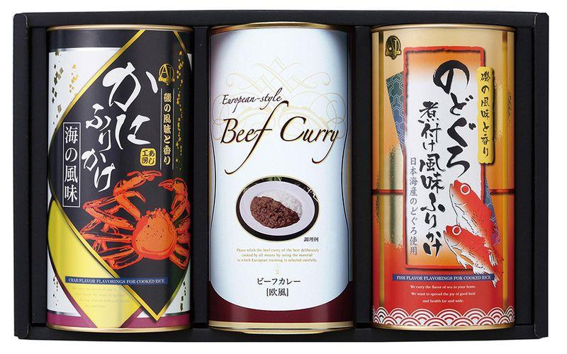 カニの繊細な旨味を吟味した素材で風味豊かに仕上げたふりかけとまろやかでコクのある本格的なビーフカレーなどを贅沢に詰め合わせたギフトです。