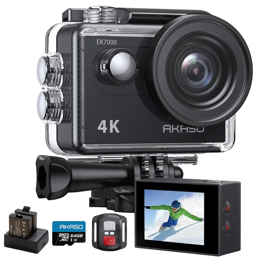AKASO EK7000 Action Camera, 4K, 20MP, 64GB Memory Card Included, Underwater Camera with WiFi, External Microphone Support, 40M Waterproof