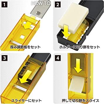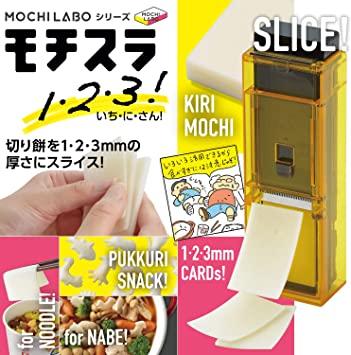 「モチラボ」シリーズ モチスラの進化系!切り餅を1mm、2mm、3mmのお好みの厚さにスライスできます。厚み調節板をセットして、スライスする厚さを調節します。1mmスライスはぷっくり膨らむスナックに。2mmスライスはスープやカップラーメンに。3mmスライスはお鍋やしゃぶしゃぶの具材に。厚みを変えて、いろいろなお料理に活用できます。自由な形にお餅を型抜きするカッター、かわいい動物の抜き型付き。