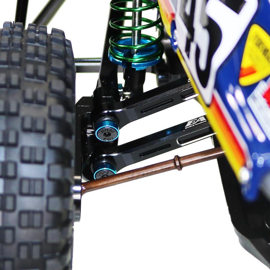 本品は高精度CNC切削によって生産された60-61硬質アルミ製のトレーリングアームリンケージです。 高い剛性と軽量化を両立したデザインは、オフロードの激しい走行をしっかりとサポートします。 しなりを抑えたダイレクトなサスペンションワークにより走行性能を引き上げます。 耐久性にも大変優れており信頼の一品となっております。 BBX(BB-01)シャーシに簡単に装着が可能です。