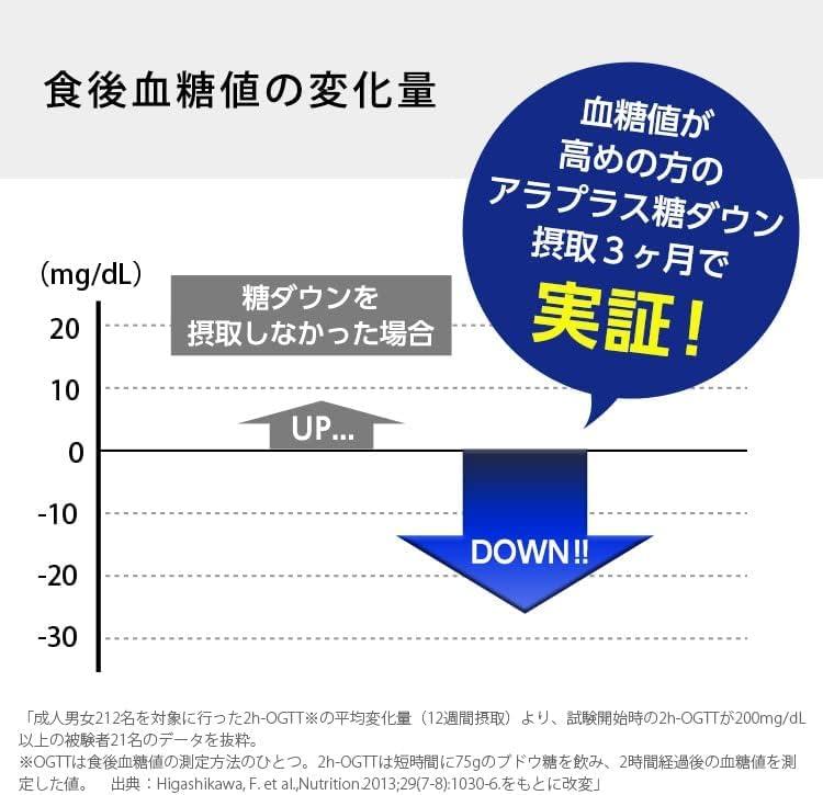 アラプラス 糖ダウンは、糖を燃焼してエネルギーに変える力を高め、高めの空腹時血糖値を正常に近づけることをサポートし、食後血糖値の上昇を穏やかにする新発想のサプリメントです。 高めの血糖値が気になる方、健康診断の結果が心配な方におすすめです。 一般的な血糖値対策サプリメントが糖の吸収を抑えるのに対し、アラプラス 糖ダウンは独自成分の5-ALA配合により、細胞内で吸収した糖の燃焼を促す※ことで血糖値の上昇を抑制します。 「アラプラス 糖ダウン」は飲むタイミングを選びません。いつでもお召し上がりいただけます。思い出した時に一日1回、忘れずに。 機能性関与成分として5-ALA(アミノレブリン酸リン酸塩)を日本で初めて配合。5-ALAは糖の燃焼に関わるミトコンドリアでのエネルギー代謝に関係しています。5-ALAは健康に良いとされているほうれん草など緑黄色野菜や黒酢、味噌など発酵食品に含まれるアミノ酸で身体を構成する基本的な物質として、美容と健康をサポートする重要な成分です。 アラプラス 糖ダウンは1日分で、ほうれん草約62kg、トマト約88kg、黒酢約5.7kg、納豆約34kg(約680パック)、ワイン約5kgもの5-ALAを摂取することができます。