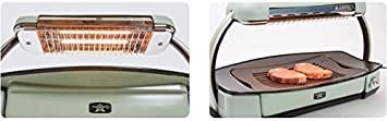 ●世界初・業界唯一の特許技術「遠赤グラファイト」搭載!●「遠赤グラファイト」は株式会社千石の特許技術で、高分子フィルムをグラファイト結晶化した素材です●このフィルムは航空・宇宙開発に欠かせない素材となっており、グラファイト結晶化された素材は、鉄の10倍以上の熱伝導率があり、速暖性が高く暖房機の熱源にも使用されている優れた素材です●その優れた素材「遠赤グラファイト」を使用したのがグラファイトグリラーです●0.2秒瞬間発熱!短時間&高温直火で食材の旨みを逃さない!●「遠赤グラファイト」が発する遠赤幅遮熱を利用し、食材に直接熱を与えます●「遠赤グラファイト」がわずか0.2秒で発熱し、予熱の必要がなく短時間&高温輻射で食材に直接熱を与える事で炭火で焼いたように仕上げます●「煙」・「ニオイ」を気にせず楽しめ、カロリーカットでヘルシー!●従来のホットプレートでは、鉄板・炭など下からの熱で焼くため、食材から出た油は全て下に落ち、油が熱せられることで「イヤな煙」が発生します●アラジングラファイトグリラーは、上からの熱で焼くことで、下に落ちた油が気化しないので煙が出ず、油ハネも少ないの...【重要】メーカーによる商品リニューアルに伴いパッケージ(内容量も含む)変更が行われた場合、新パッケージでお届け致します事ご了承願います。