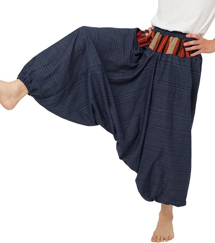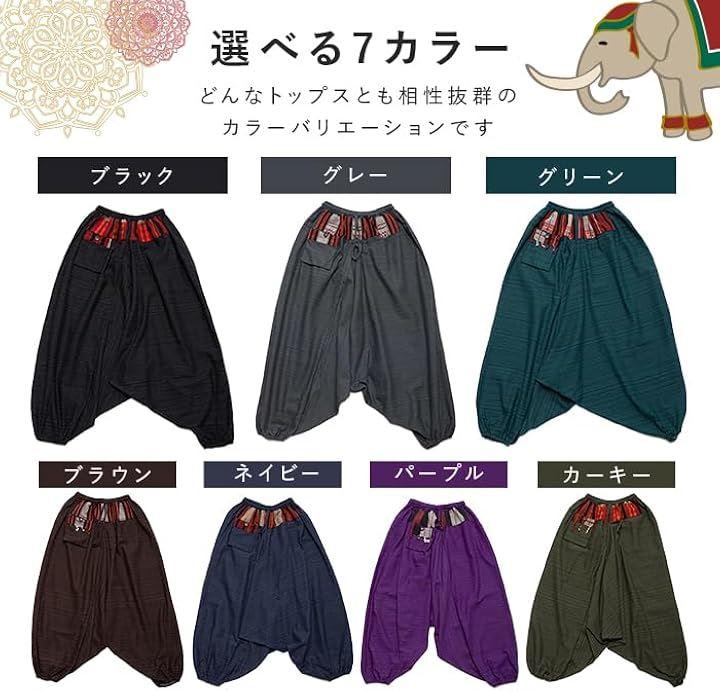 「素材」 このアラジンパンツは、100%コットンで作られており、夏の暑さでも快適な着心地。