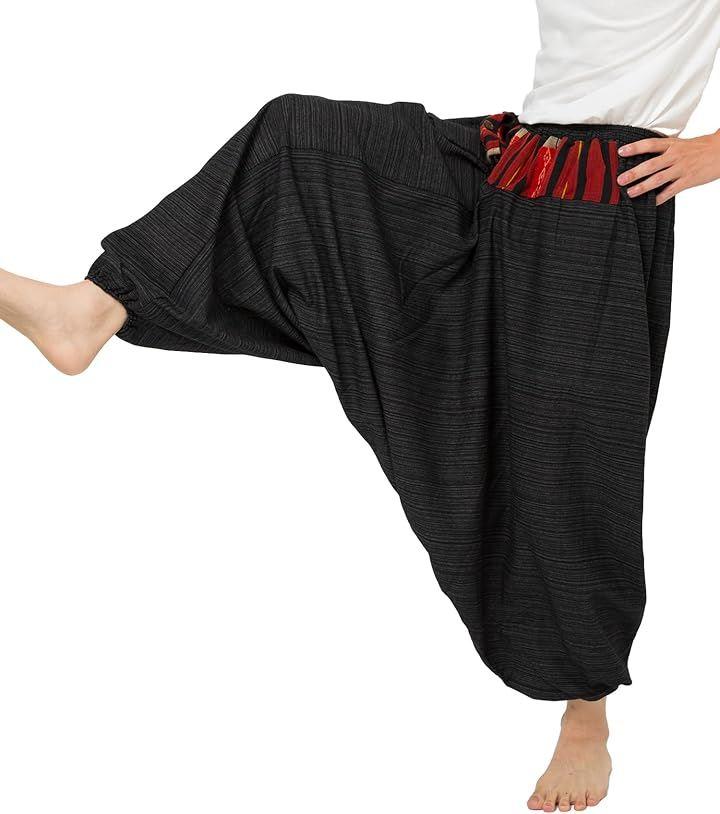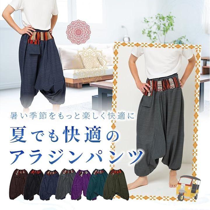 「素材」 このアラジンパンツは、100%コットンで作られており、夏の暑さでも快適な着心地。