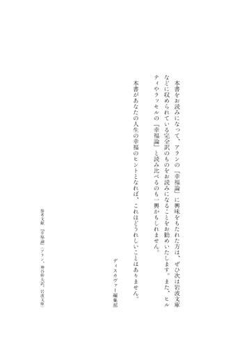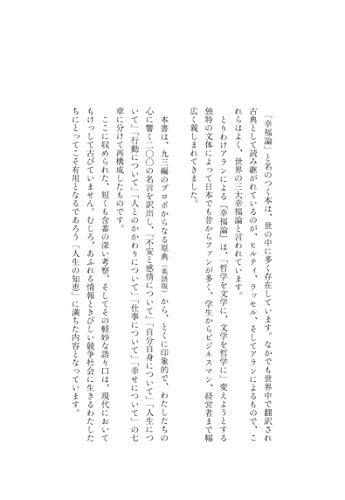 通常1-5営業日で発送:「幸福であることは他人に対する義務である」「望んでいることはすべて、人を待っている山と同じ。自らよじ登っていかなければならないのだ」「運命は不変ではない。指をパチンと鳴らした瞬間にも、 新しい世界が生まれているのだ」「嘆きも悲しみも、鳥と同じ。ひょいと留まっては、飛びさっていく」「まず自分がほほえまなくて、誰がほほえむのか」etc…時代を超えて読み継がれる“幸せに生きるための知恵”