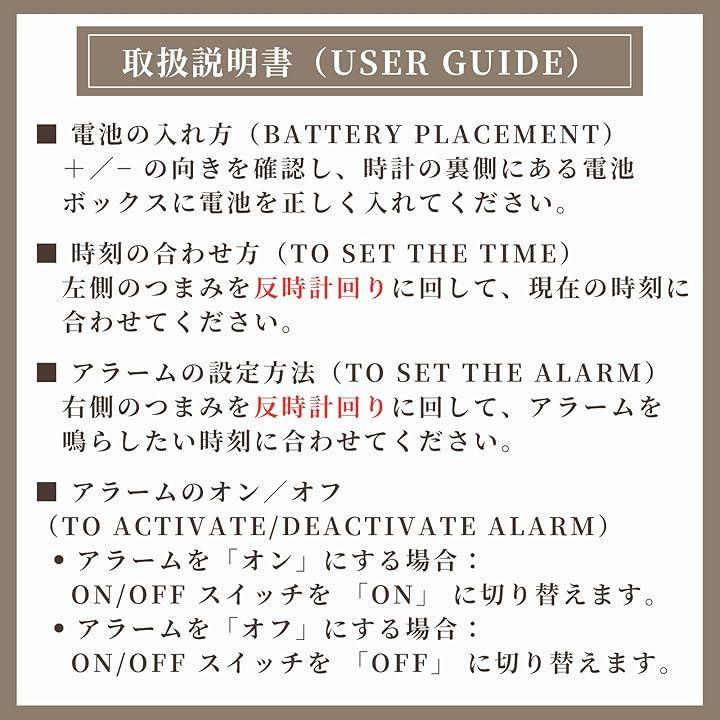 「使いやすく耐久性も抜群」 操作はシンプルなつまみで時刻とアラームをセットするだけ。