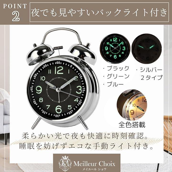 ツインベルと金属ハンマーによる大音量設計で、深い眠りの方でもしっかり起床できる目覚まし時計。