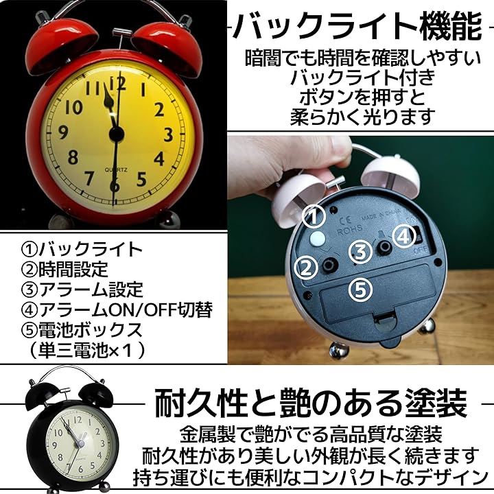 「コンパクトなアナログ目覚まし時計」 アンティークな雰囲気漂うベル式目覚まし時計がおしゃれでクラシックな雰囲気を再現。