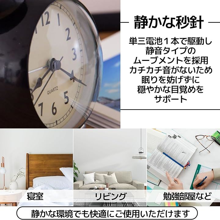 カチカチ音がないため、眠りを妨げずに穏やかな目覚めをサポート。