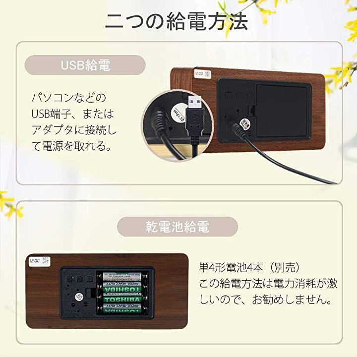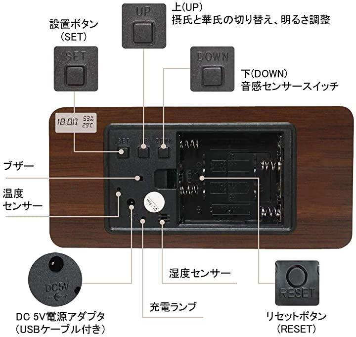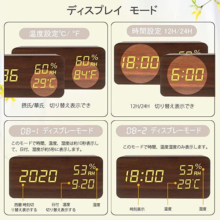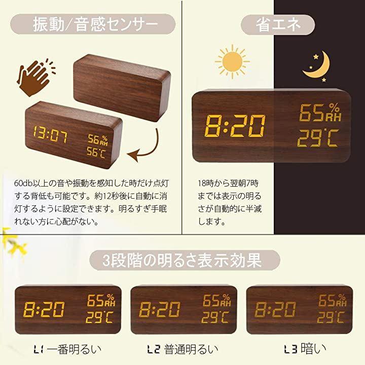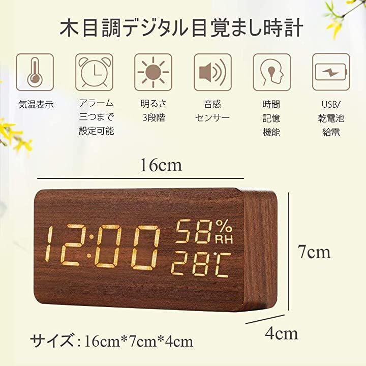 サイズ:15x7x4CM2020最新デザイン 目覚まし時計置き時計木目LEDデジタル時計アラームクロック温度湿度計カレンダー音声感知USB/乾電池給電