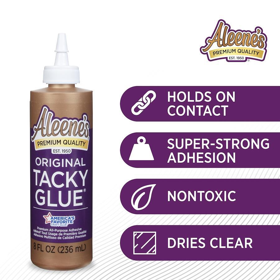 Aleene's Original Tacky Glue dries clean and flexible;Cleans up fast and easy with water;The nontoxic formula makes it your best choice for a variety of surfaces;Find inspiration and techniques at ilovetocreate.com