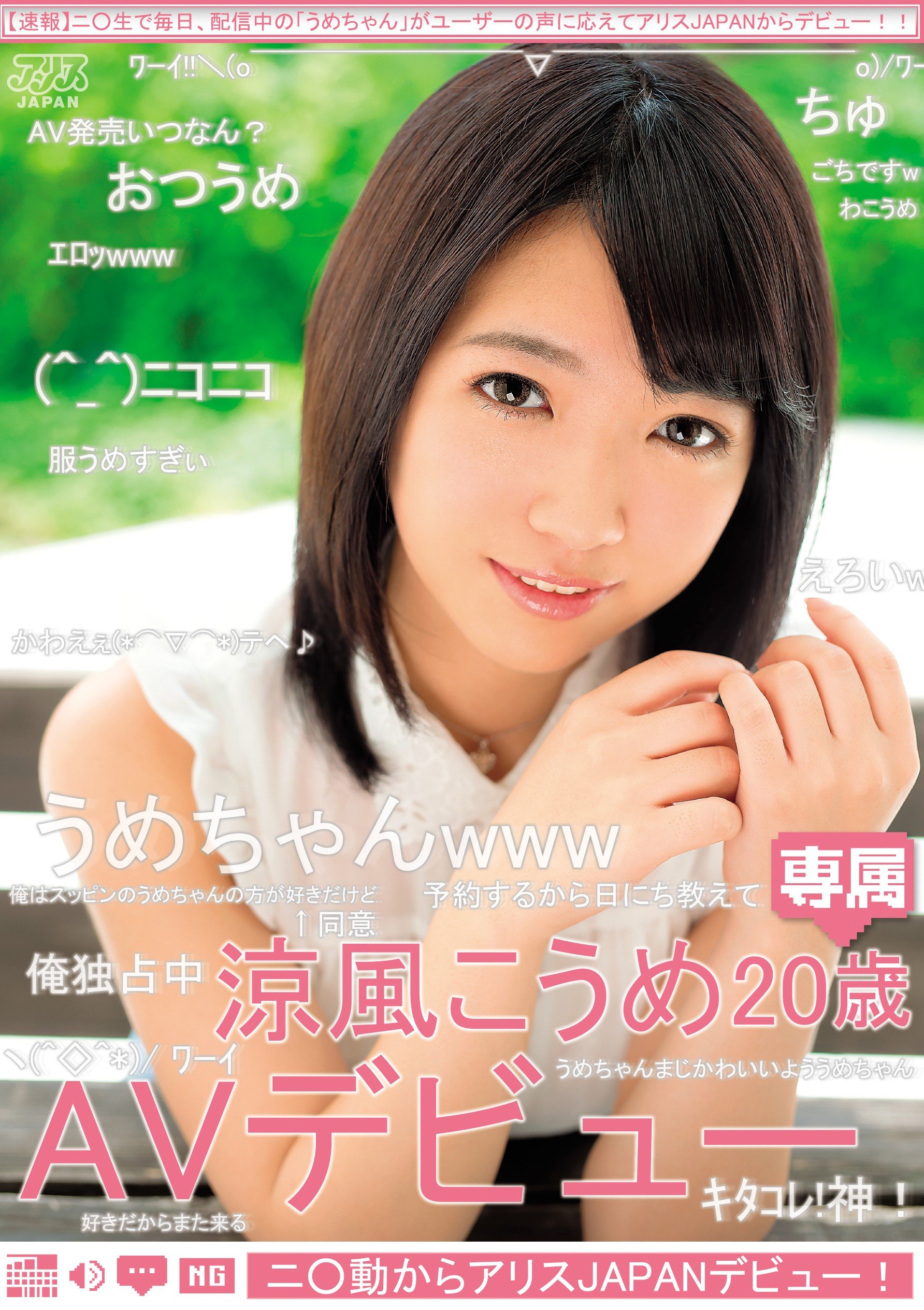 【涼風こうめ ニ○ニコ動画の生主として4年間活動。登録数約6000人、レベル56の人気配信者。】ニ○ニコ動画で人気の「うめちゃん」がまさかのAVデビュー! 生配信では絶対に見れなかったオッパイとオマ○コとアナルを大公開! フェラもオナニーもセックスも、ぜ~んぶ見せちゃいます! ニ○生なら垢BAN確実! うめちゃんのイキ顔をお見逃しなく! 顔射お掃除に大量潮吹き…うめちゃんデビュー作から飛ばしすぎ! ...