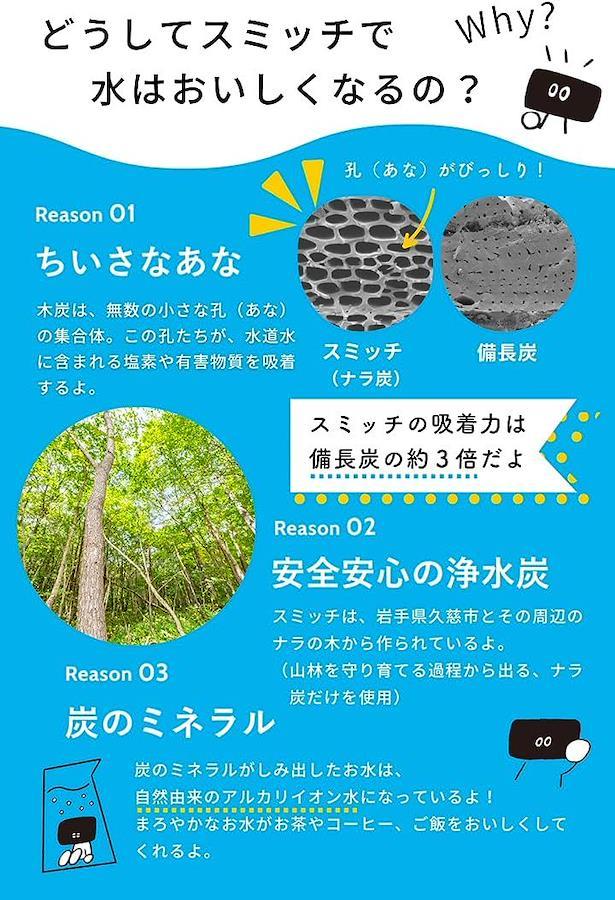 ぼくたちSUMITCH(スミッチ)は「炭で持続可能な社会へスイッチする」が名前の由来の高品質な浄水炭。