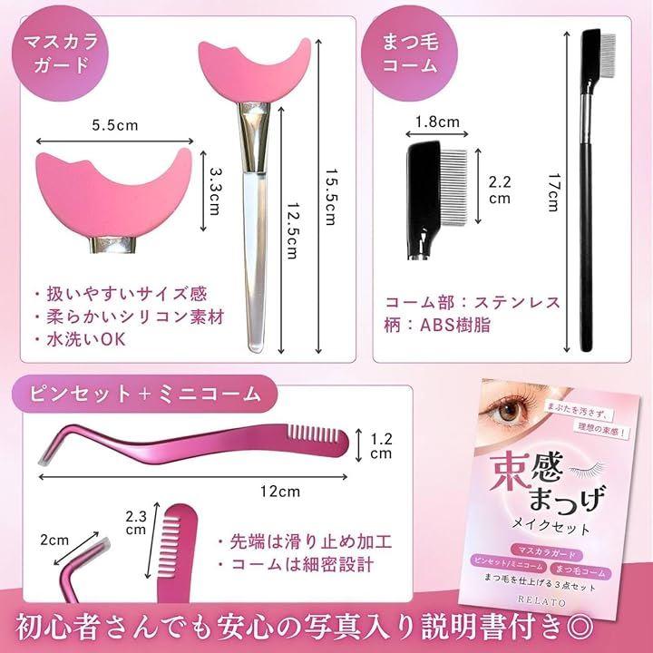 パッチリ目元を叶えるオールインワンセット。 マスカラガード(シリコン製)、先細ピンセット、まつげ用コームの3点セット。