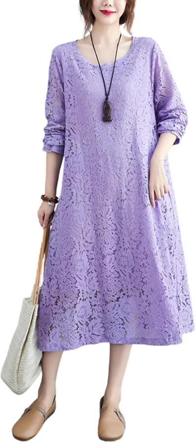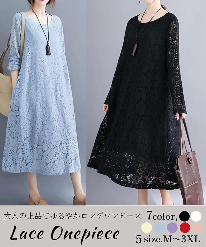 無地のワントーンカラーで、素敵な総レース柄がおしゃれなレディースワンピース(Women's Dresses)です。