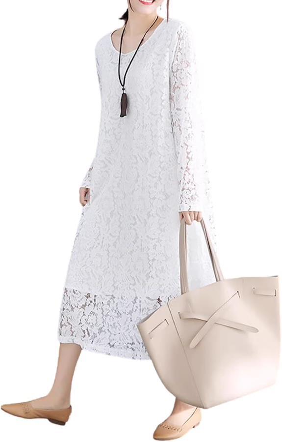 無地のワントーンカラーで、素敵な総レース柄がおしゃれなレディースワンピース(Women's Dresses)です。