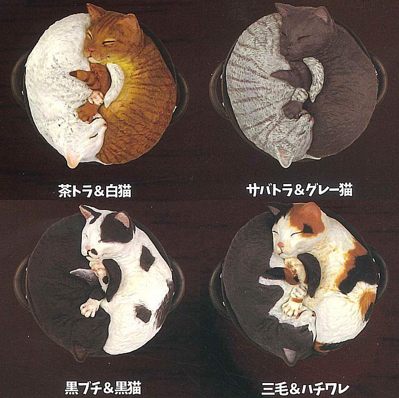 小さな鍋の中で、仲良く寄り添って眠る2匹の猫。その愛らしい姿をリアルに再現した、癒しの猫フィギュアが登場。手のひらにちょこんと乗るコンパクトなサイズ感ながら、毛並みや表情の細部にまでこだわった精巧な造形が魅力です。原型制作は、リアルな作風に定評のあるSHINZEN造形研究所の竹内しんぜん氏。まるで本物の猫をそっと手に取ったような、見る人の心を和ませる逸品です。