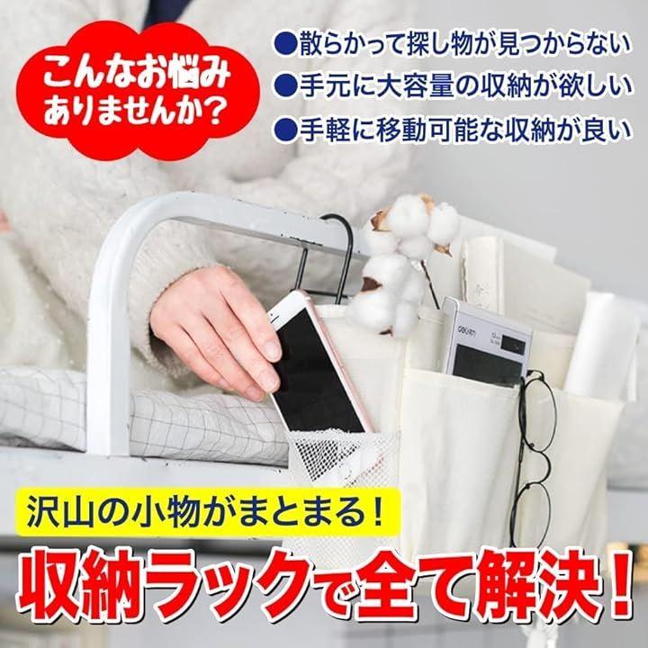 「小物をまとめて収納」ベッドサイドに取り付けができる収納ラックになります。