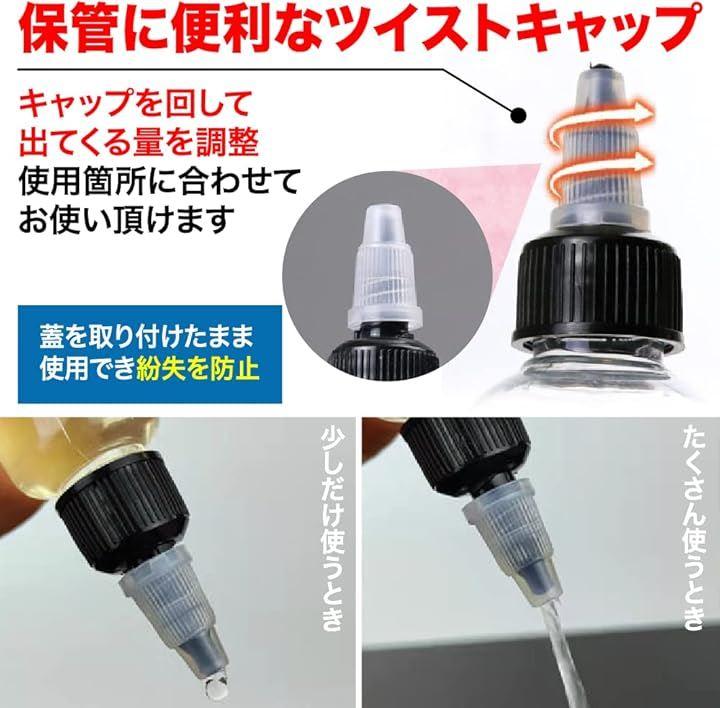 「保管に便利なツイストキャップ」出てくる量を調整できるツイストキャップ構造で使用箇所に合わせてお使い頂けます。