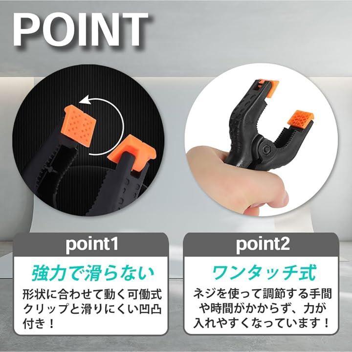 「背景布を滑らず固定」写真撮影をする際に背景布とスタンドに挟んで留めるスプリングクランプ。