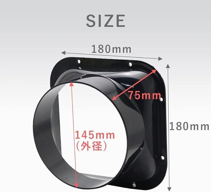 「商品詳細」本体サイズ:ダクト部外径145mm,内径139mm,縦180mm,横180mm,縦75mm