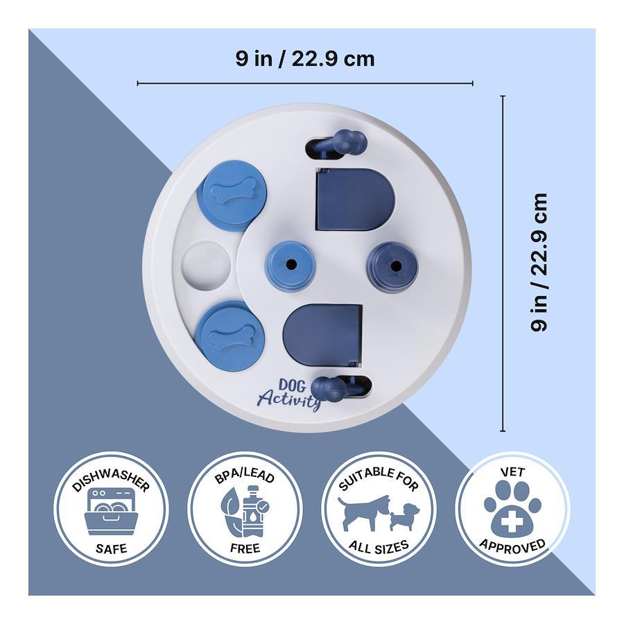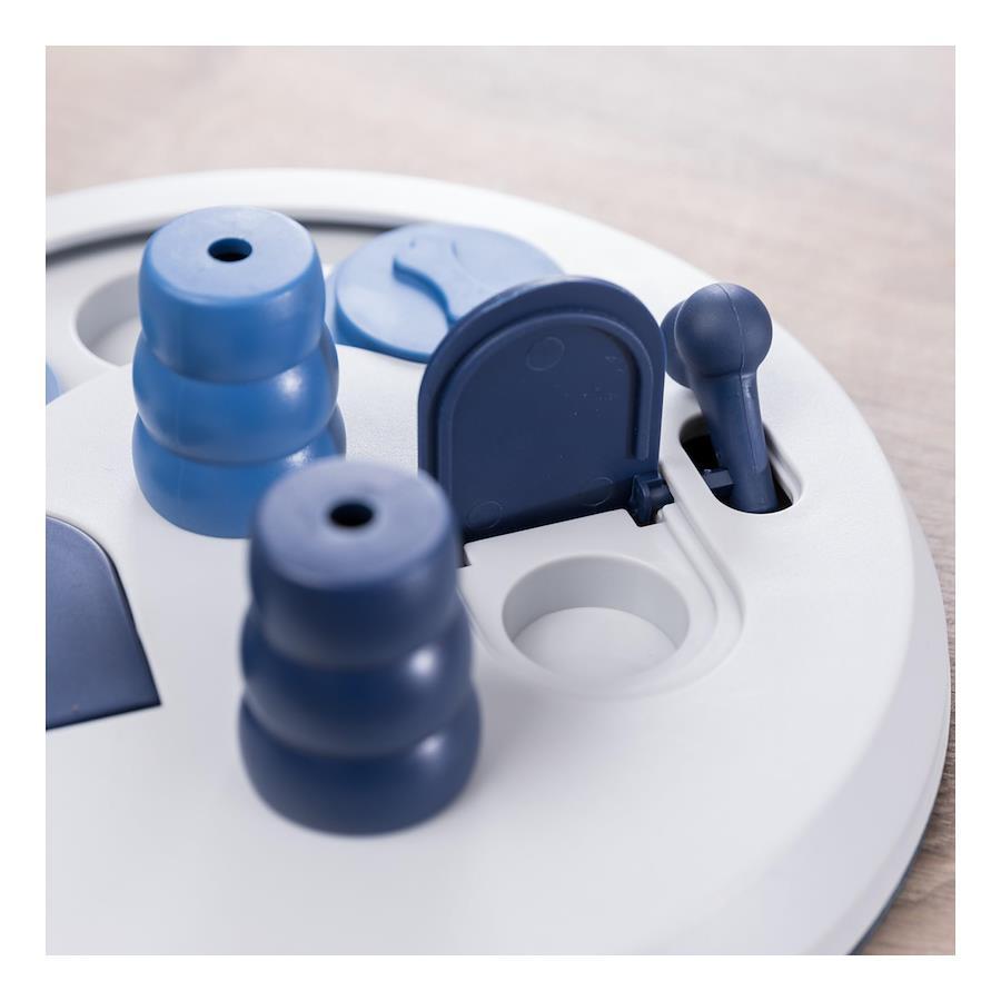 For intermediate canine players;Flip lids using knobs;Slide disks to side;Lift up cones note that design prevents cones from being knocked over they must be lifted straight up to remove;Vary number and placement of treats to increase level of difficulty