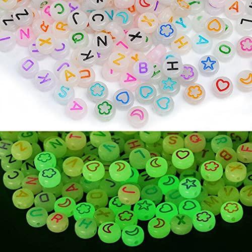 1000個のアルファベット文字ビーズ 暗闇で光る アルファベットスペーサービーズ ブレスレットネックレス用 1ロールクリアスレッドで作れます。