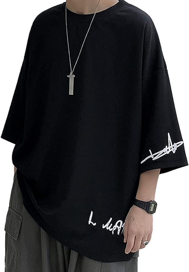 ・「ルーズシルエットカットソー」アルファベットのワンポイントが定番デザインにプラスα、ルーズスタイルには必須のアイテムです・カラーは使えるブラック、ホワイト、グレーをラインナップ。