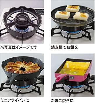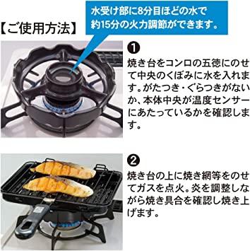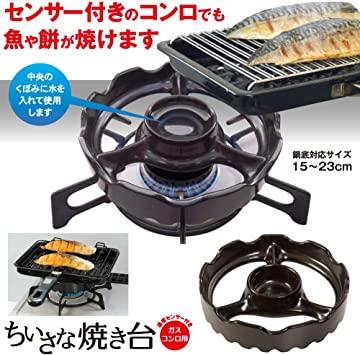 センサー付きのコンロでも魚や餅が焼けます中央のくぼみに水を入れて使用します「ちいさな焼き台」を使うと、温度センサー付きコンロで炎が弱くなることなく焼き網などで調理ができます。●温度センサー付きガスコンロの五徳の上で炎が弱まらないようにするための補助器具です。●センサーに反応して炎が弱まり、うまく焼けない方におすすめです。●ガスの火力調整も自在にできるので、焼き具合を確認しながらの調理が可能です。●素材に耐熱温度差700℃の耐熱陶器(耐熱セラミックス)を使用しているので、正しく使用すれば温度差によって割れる心配もありません。●本体が汚れてしまった場合は、金属製のたわしやブラシでゴシゴシこすり洗いができます。【SIセンサー付きガスコンロとは】調理器具の鍋底温度を感知して、ある一定以上の温度になるとガスを遮断したり、自動で火力を調節する機能を備えたガスコンロのことです。(2008年10月以降センサー付きコンロしか発売されていません。)【ご使用方法】1、焼き台をコンロの五徳にのせて中央のくぼみに水を入れます。がたつき・ぐらつきがないか、本体中央が温度センサーにあたっているかを確認します。※水受け部に8分目ほどの水で約15分の火力調節ができます。※水がなくなればセンサーが反応して炎が弱まります。2、焼き台の上に焼き網等をのせてガスを点火。炎を調整しながら焼き具合を確認し焼き上げます。●裏面は五徳にはまり、ズレにくい設計です。・焼き魚に・焼き網でお餅を・たまご焼きに・ミニフライパンに※ご使用前に同梱の取扱説明書を必ずお読みください。お読みいただいた後は必ず保管し、使い方を再確認する場合にご利用ください。※正方形の五徳には対応していません。