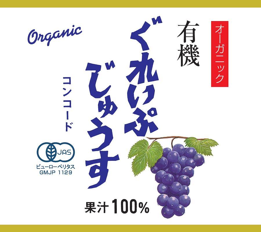 米国ワシントン州産の有機栽培コンコードぶどうを100%使用。濃縮還元していないストレートジュースです。有機JAS認定農産物加工食品。