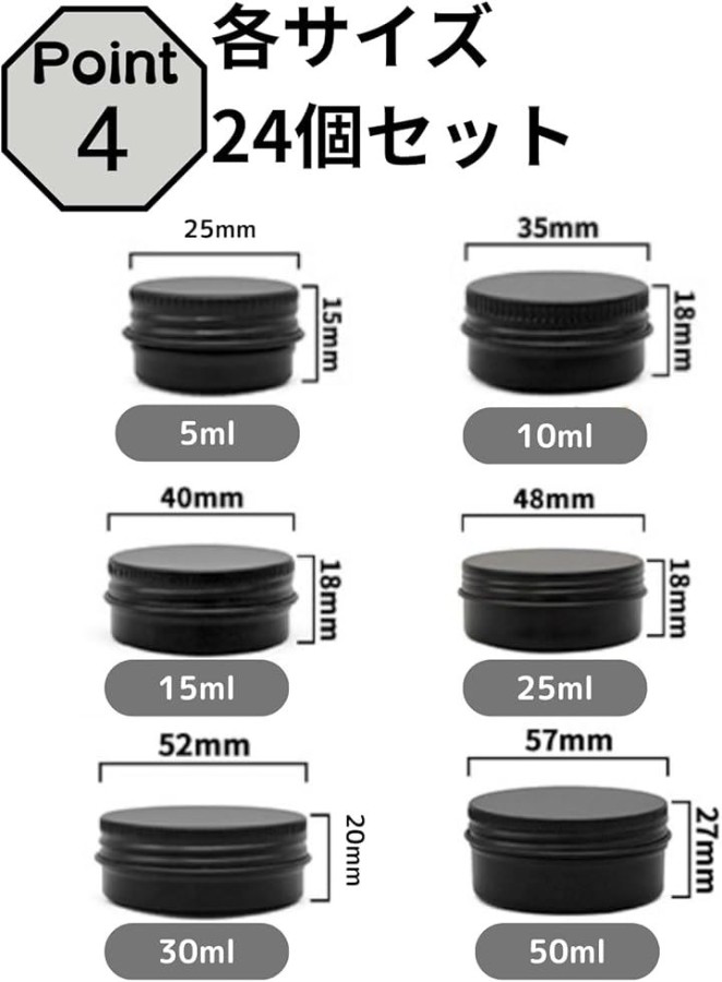 Aluminum Can Case, Cream Case, Jar, Cosmetic Container, Small Portion, Black, Set of 24