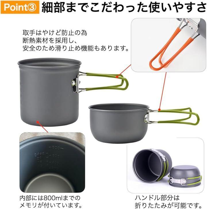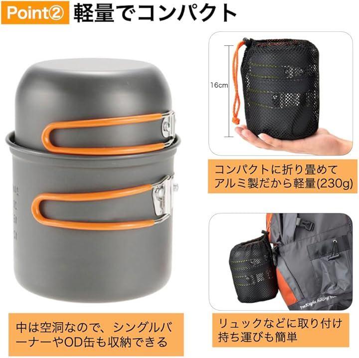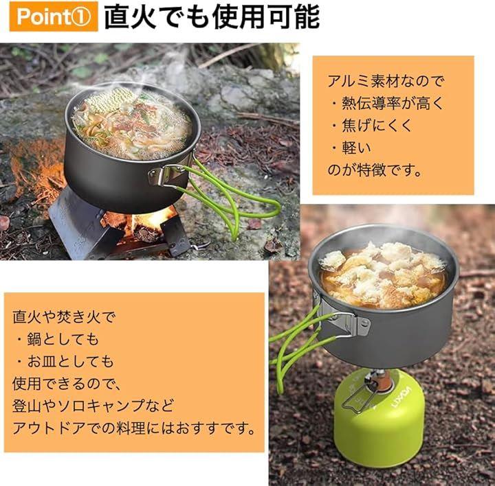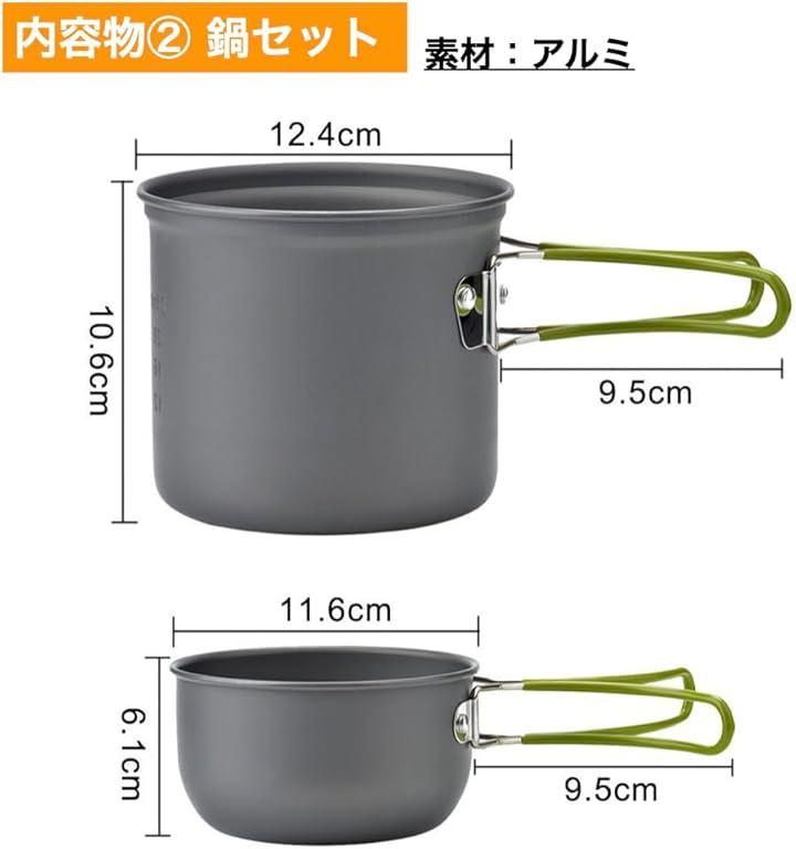 「セット内容」アルミニウム鍋x2、収納袋x2、ステンレスのスプーンx1、ステンレスのフォークx1、ステンレスのナイフx1、使用人数:1~2名様をお勧めます。
