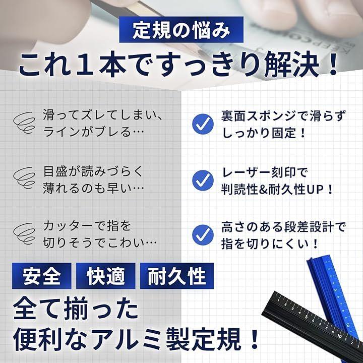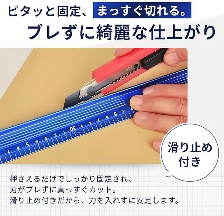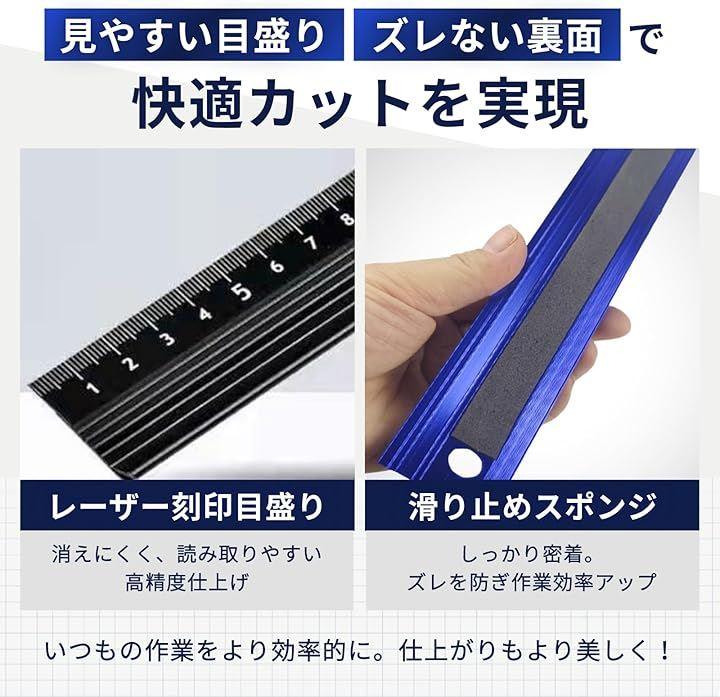 「滑り止め機能で快適作業」裏面の滑り止めスポンジが作業中の定規のズレを防止。